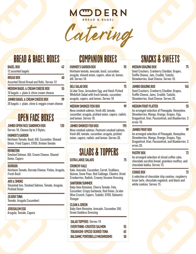 • 5pm–6pm: Bakery & Coffee Bar Only (Pastries, Drinks, Bagels, Breads)